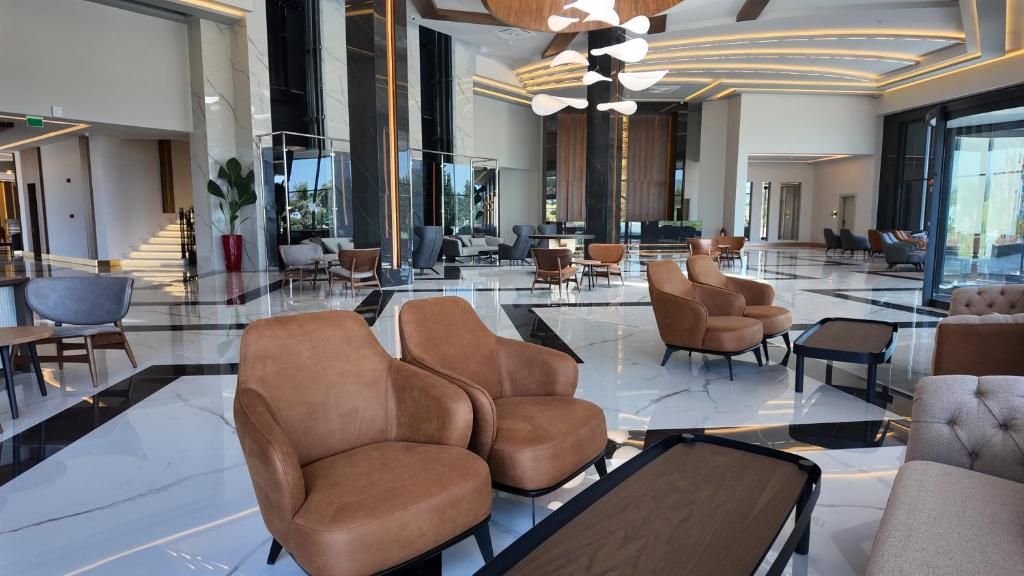 На територията има: открити басейни и аквапарк с водни пързалки, Спа и уелнес център, фитнес зала, сауна, турска баня, анимация, дневни и вечерни програми, спортни площадки и активности като волейбол, тенис, детски клуб и детски площадки (специални зони за деца).