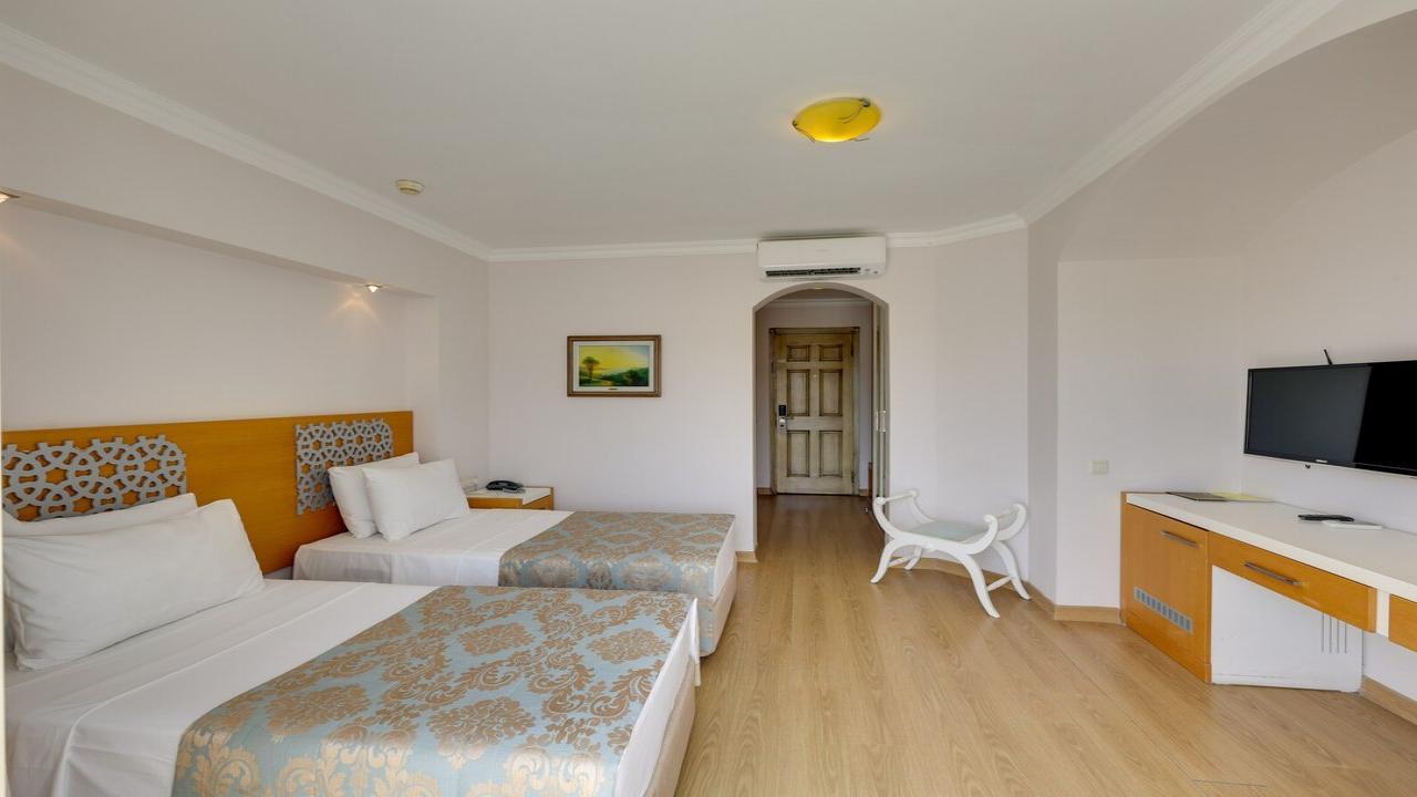 Хотелът се състои от една основна 5-етажна сграда с 4 асансьора и разполага с общо 351 стаи с гледка градина или море, от които 259 са Standard Room (18-20 m²), разположени в основната сграда и 92 Relax Room (20-28 m²), разположени в клубната част на хотела, в двуетажни къщички. Всички стаи са оборудвани с: климатик, телевизор, телефон, баня с душ или вана, сешоар, мини бар (безплатен при настаняване), балкон или тераса, WI-FI (безплатно). Почистване на стаите - всеки ден, смяна на спалното бельо - 2 пъти в седмица.