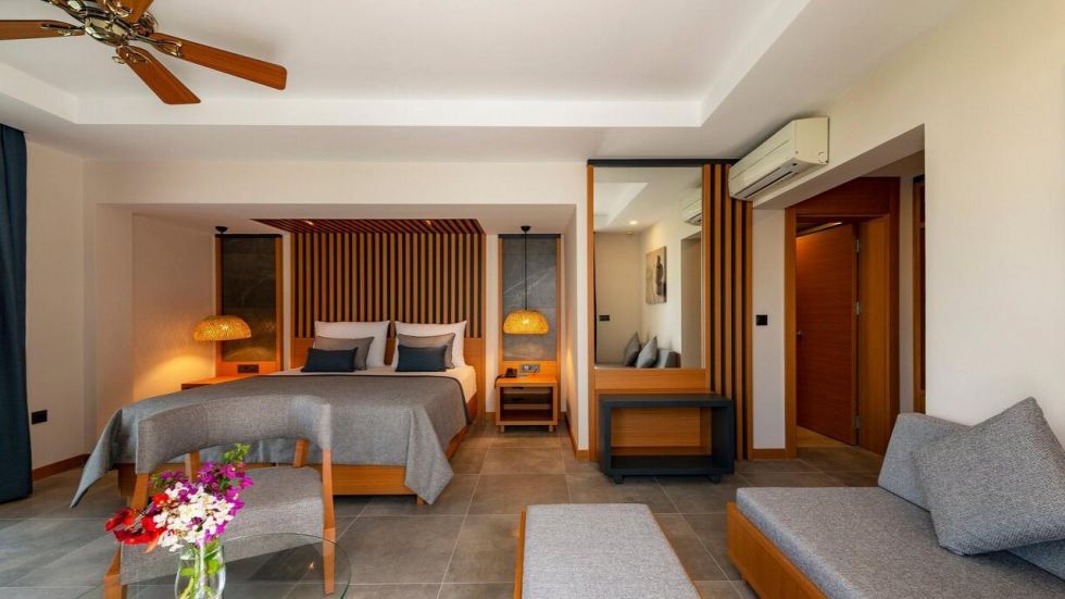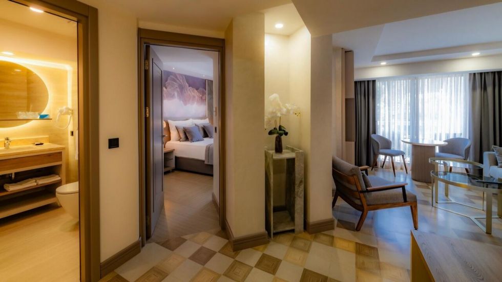 Хотелът се състои от 339 стаи от които: Standard Room Land View (35 m²), Standard Room Sea View (32 m²), Standard Sea View Corner room (35 m²), Deluxe Garden Room (30 m²), Superior Garden Room (35 m²), Junior Suite (45 m²), Senior Suite (55 m²) и стаи за инвалиди. Всички стаи са оборудвани с централен климатик, телевизор, телефон, баня с душ/вана, сешоар, мини бар, сейф, балкон или тераса, Wi-Fi. Почистване на стаите - всеки ден, смяна на спалното бельо - 3 пъти в седмицата.