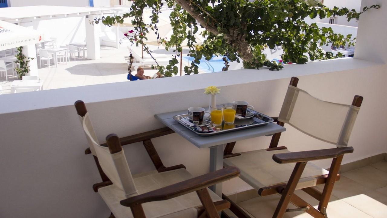Всички стаи са декорирани в модерен цикладски архитектурен стил и разполагат с всички удобства, от които се нуждаете. Стаите са снабдени с климатик, телевизор с плосък екран със сателитни канали, хладилник, сейф, сешоар, собствена баня с душ, тоалетни принадлежности, балкон или тераса.