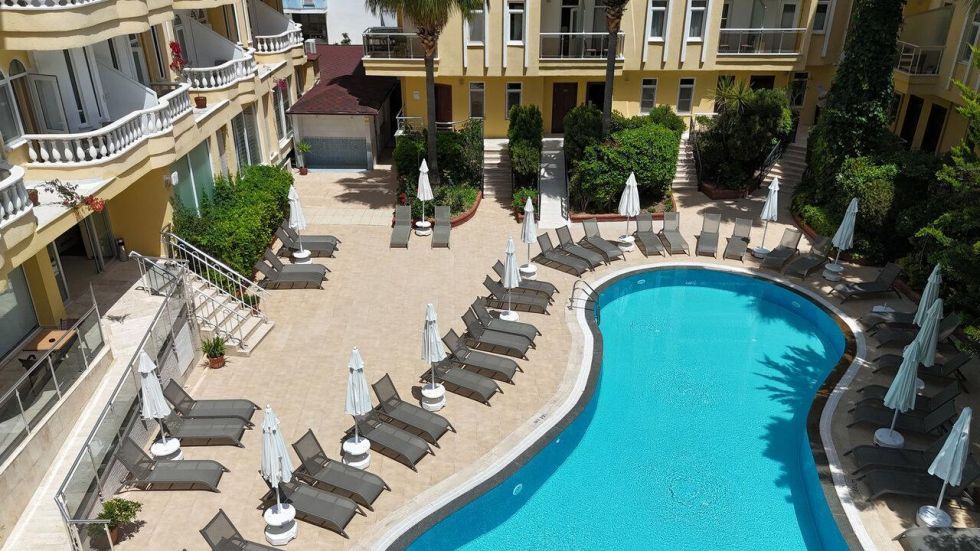 Хотелът е разположен на удобно място между центъра на Аланя и плажа, с отлична транспортна връзка и близост до основни туристически атракции и забележителности.
