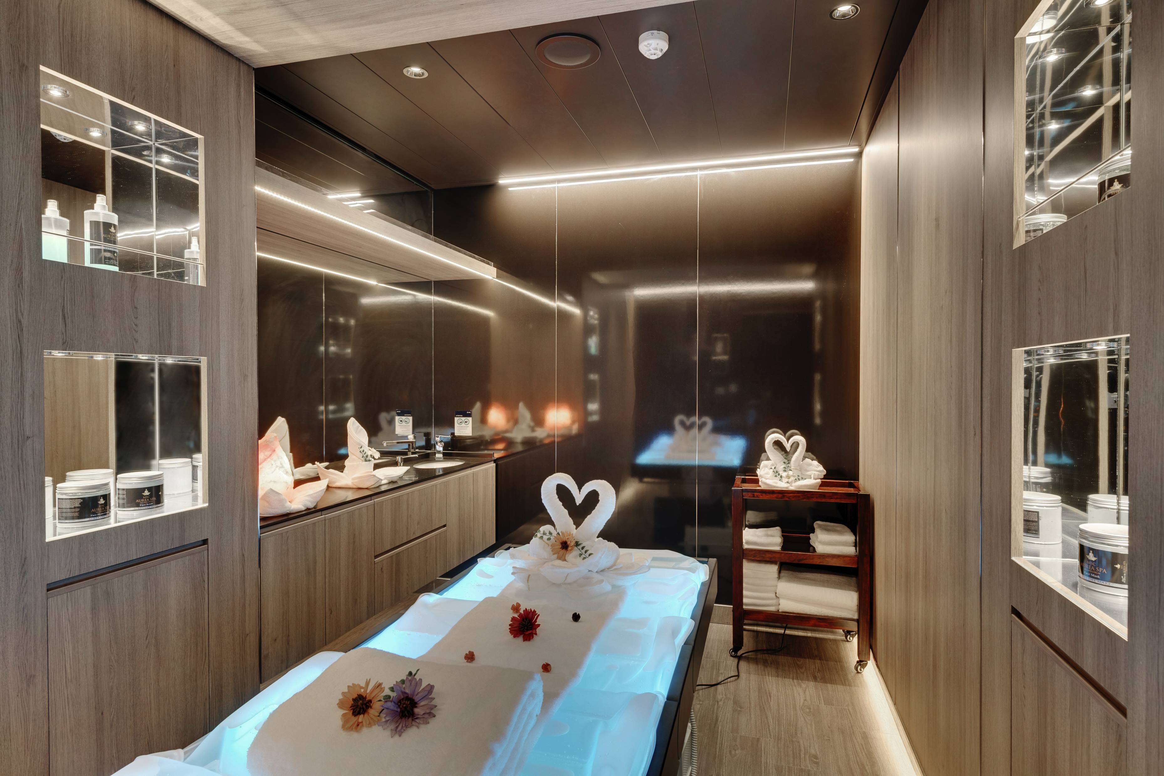 Гостите могат да избират между 2066 каюти от различни категории, създадени да отговарят на всички нужди по време на плаването: вътрешни каюти, каюти с прозорци и балкони, стаи за инвалиди, апартаменти с тераси и джакузи.