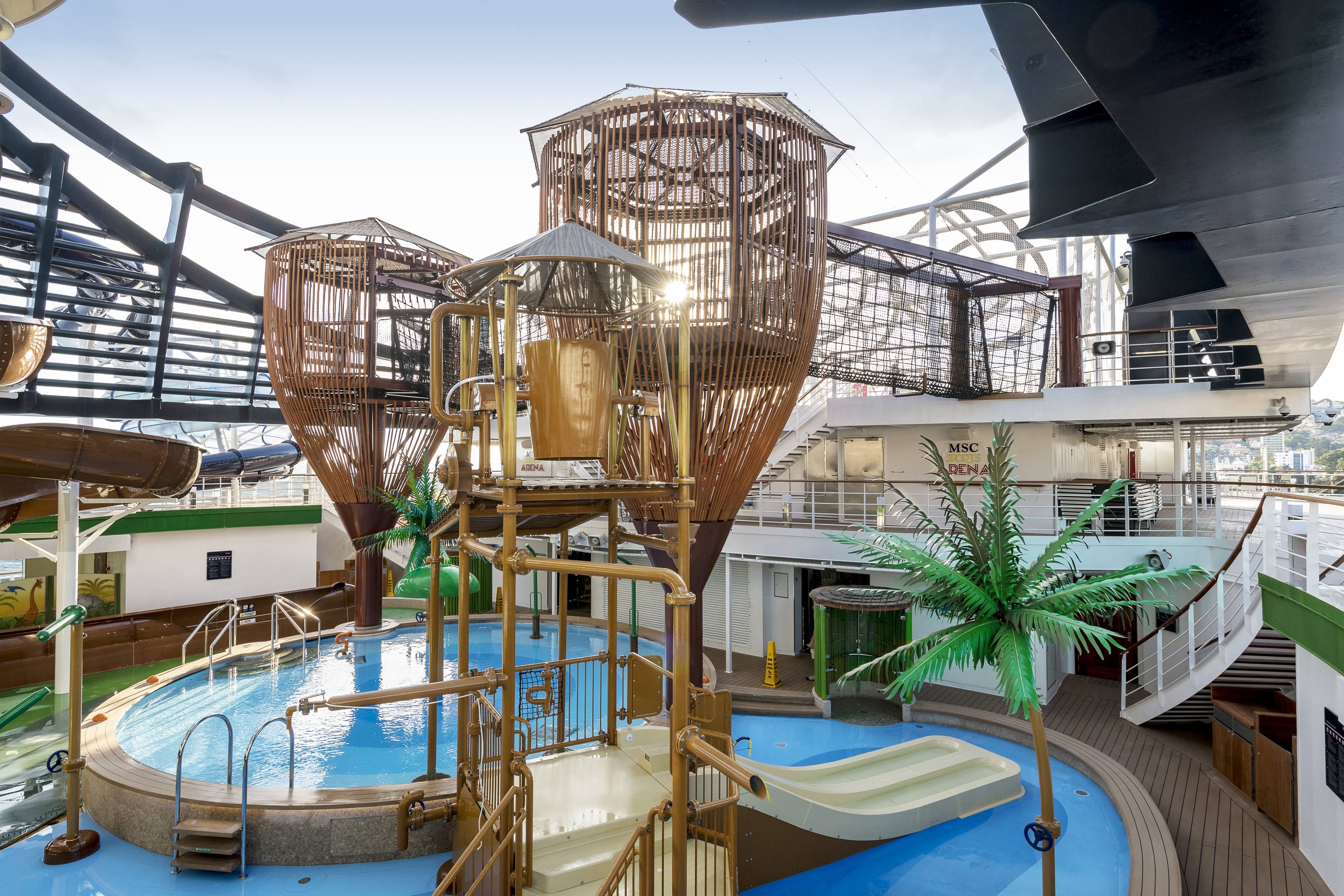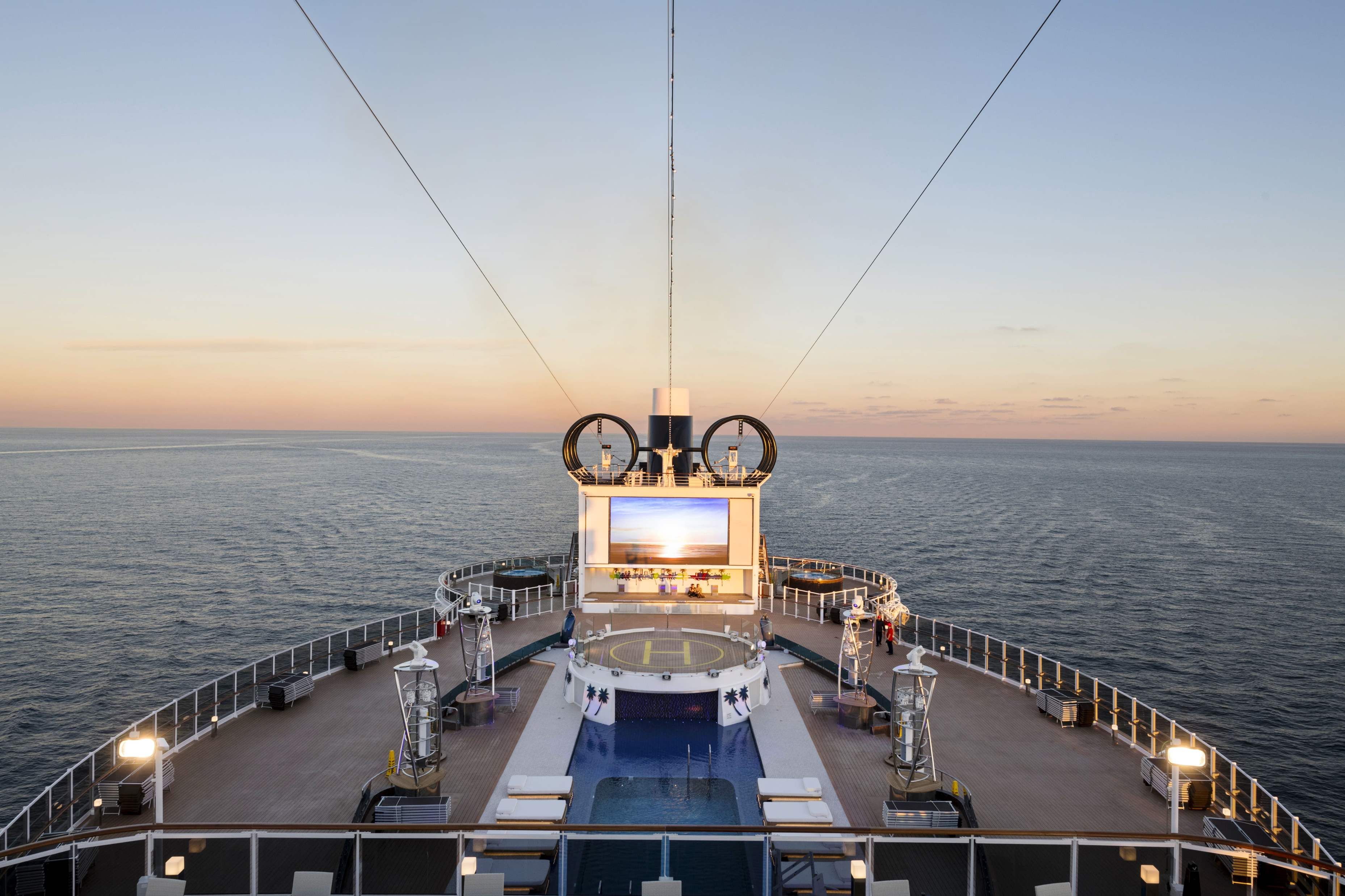 Корабът разполага с 4 басейна и обширни плажни зони с шезлонги около тях. Има и закрит басейн и 13 джакузита.