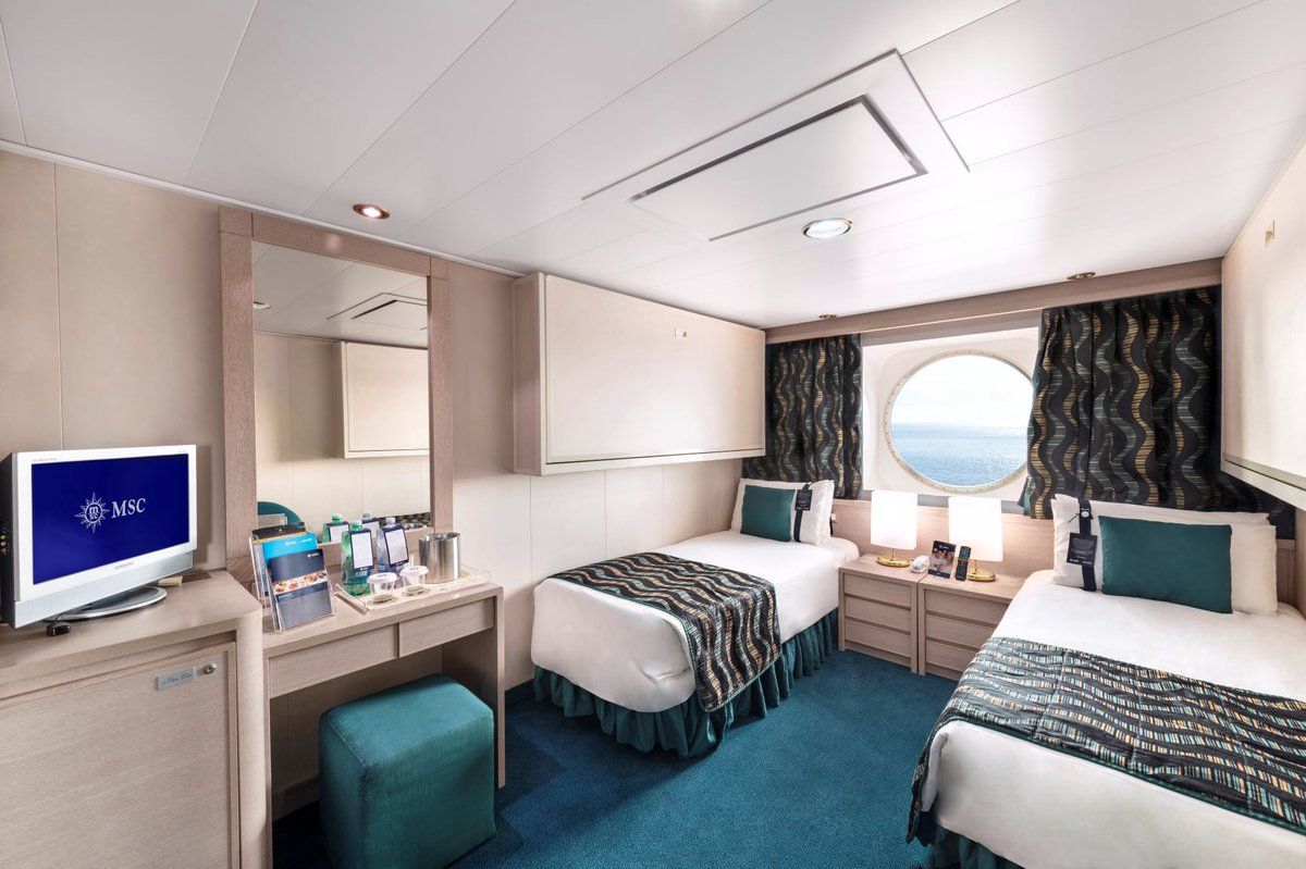 Суити, каюти с балкон, каюти с прозорец /не се отваря/, вътрешни каюти, каюти за инвалиди, фамилни каюти с балкон. Всички със сателитна ТВ, телефон, сейф, сешоар, климатик, минибар, интернет и рум сървиз срещу заплащане. Повечето разполагат с диван, който се превръща в трето легло или 2 легла едно над друго за настаняване на 2 деца.