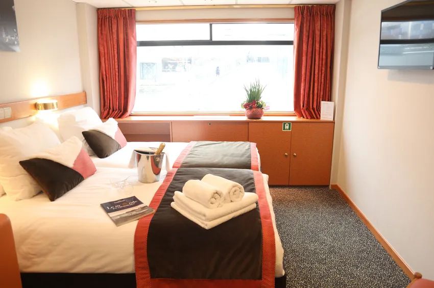 Всички каюти са с индивидуален климатик, баня и тоалетна, сешоар, телефон за вътрешни разговори, телевизор, сейф, интернет.