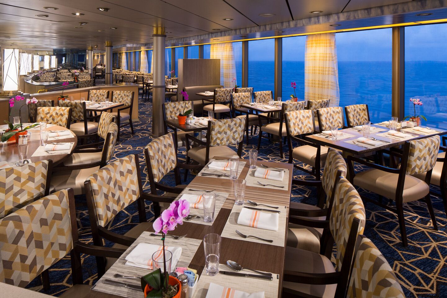 Корабът разполага с шест заведения за хранене, от коите 3 са включени в цената на круиза: The Dining room – основен ресторант за закуска, обяди вечеря, Lido Market бюфет, предлагащ прясно изпечен хляб и сладкиши, салати, месо, риба на самообслужване, Dive in – грил, предлагаш бургери, хот-дог и картофки. Срещу доплащане може да посетите и Pinnacle Grill – стек хаус с премиум телешко и богата винена листа, Canaletto – италиански ресторант, представящ автентична кухня от Ботуша, Morimoto by sea – азиатски ресторант, фокусиран върху суши и прясна риба.