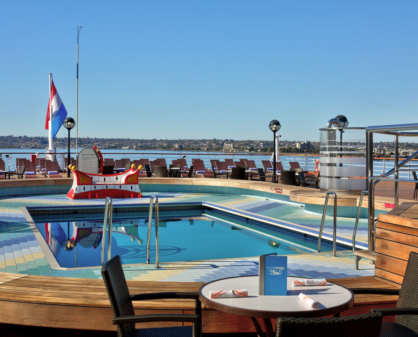 С класически морски интериор, модерни удобства и впечатляваща арт колекция, това е корабът, който круизната компания използва за ежегодното си околосветско пътешествие. Разполага с 11 дека и множество общи пространства, между които театър, бар с жива музика, магазини, фото студио, фитнес център, казино, открито игрище за пикълбол, детски клуб, ресторанти и барове.