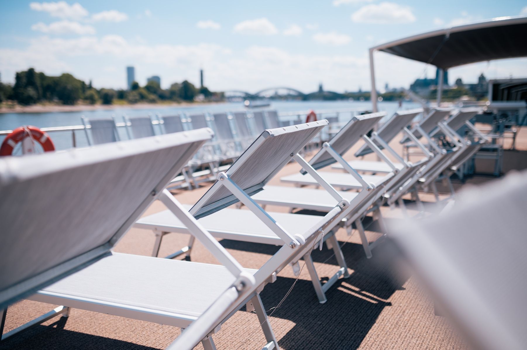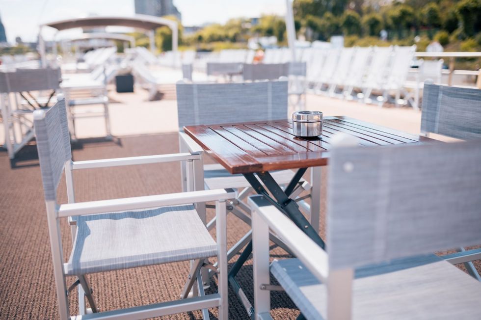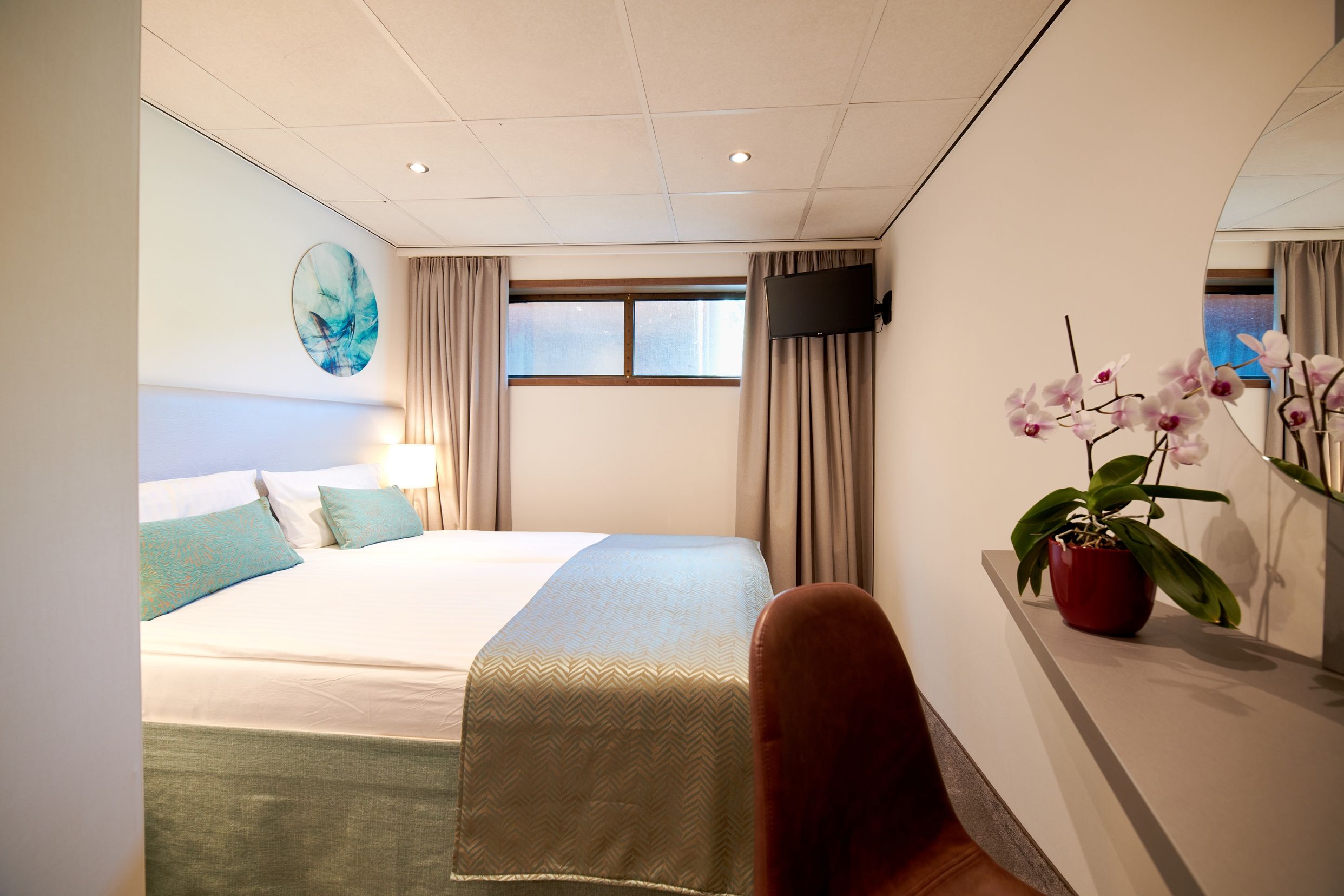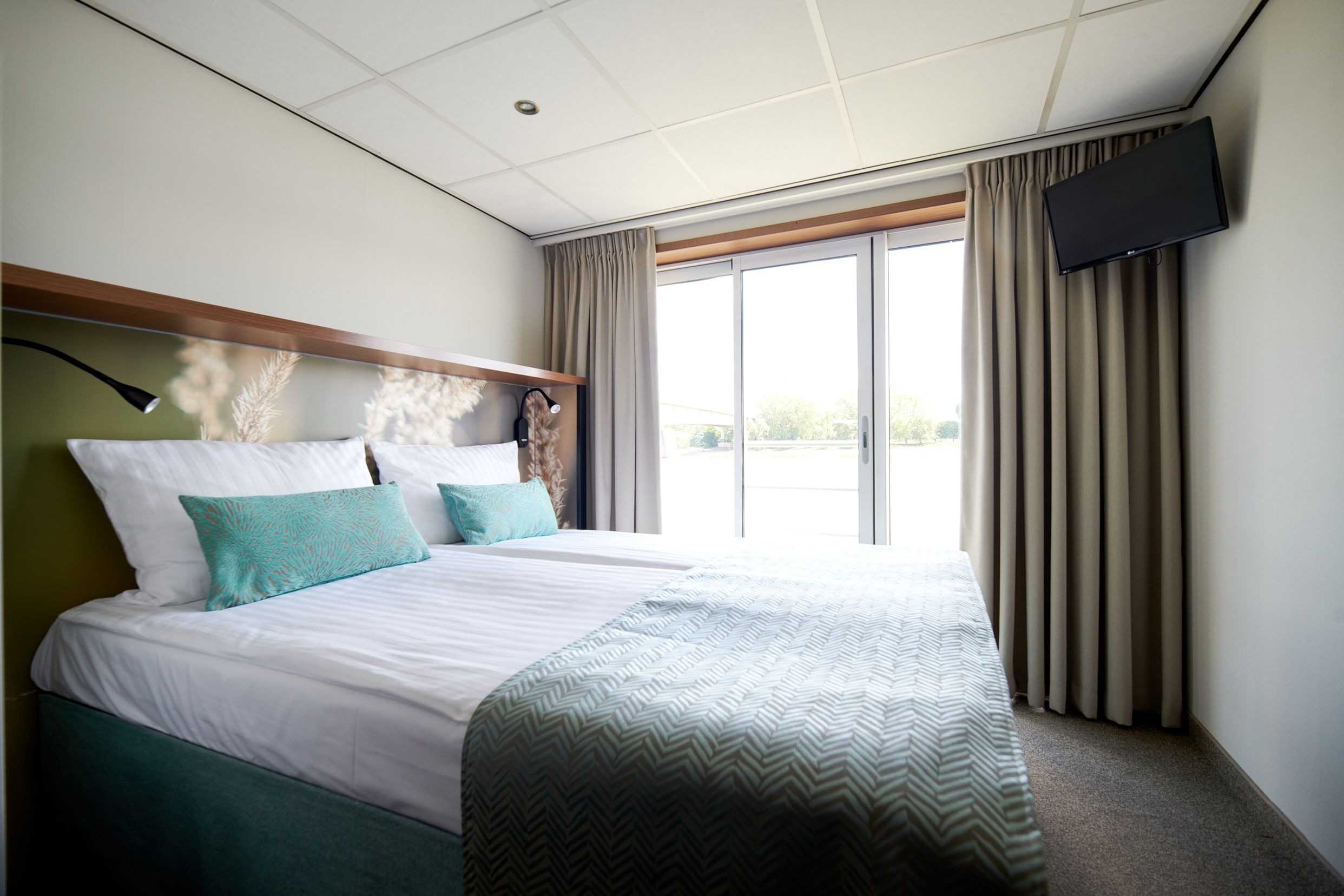 Каютите на горната палуба имат големи френски прозорци, които се отварят.