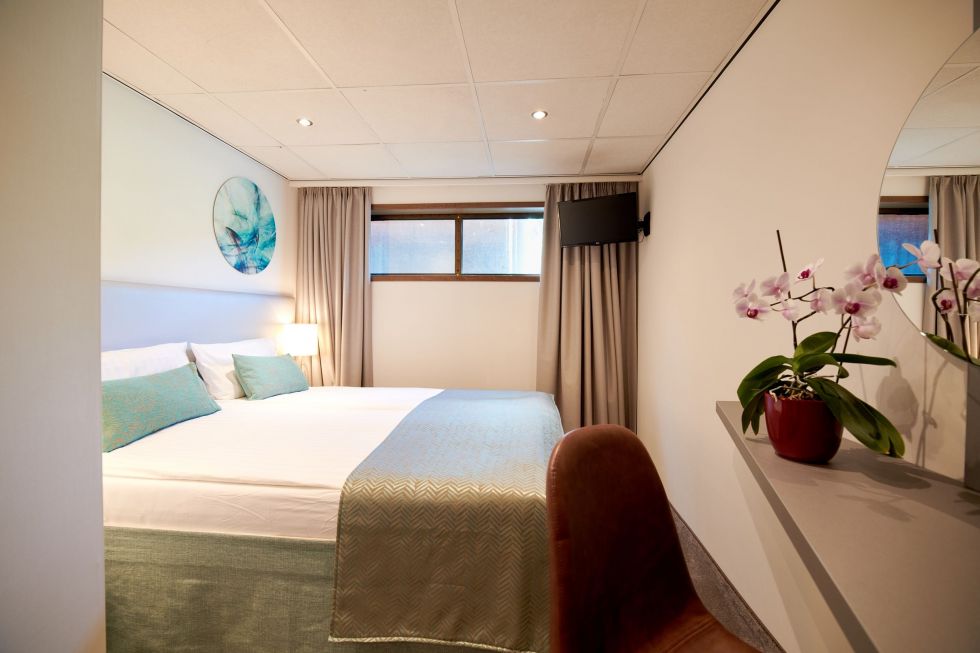 Каютите са с площ от 12 м2 и разполагат с индивидуален климатик, сателитна ТВ, сешоар, сейф, баня и тоалетна.
