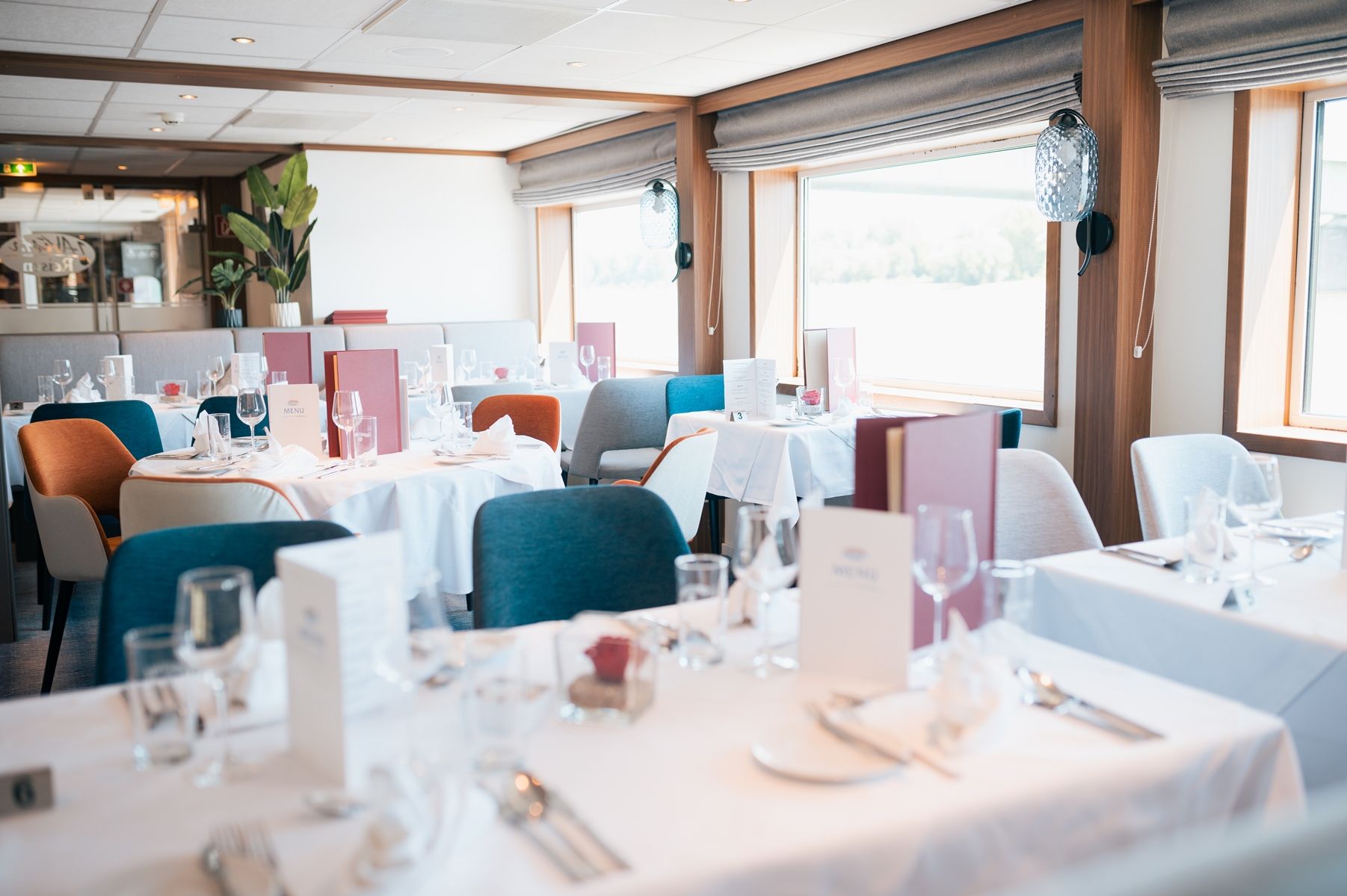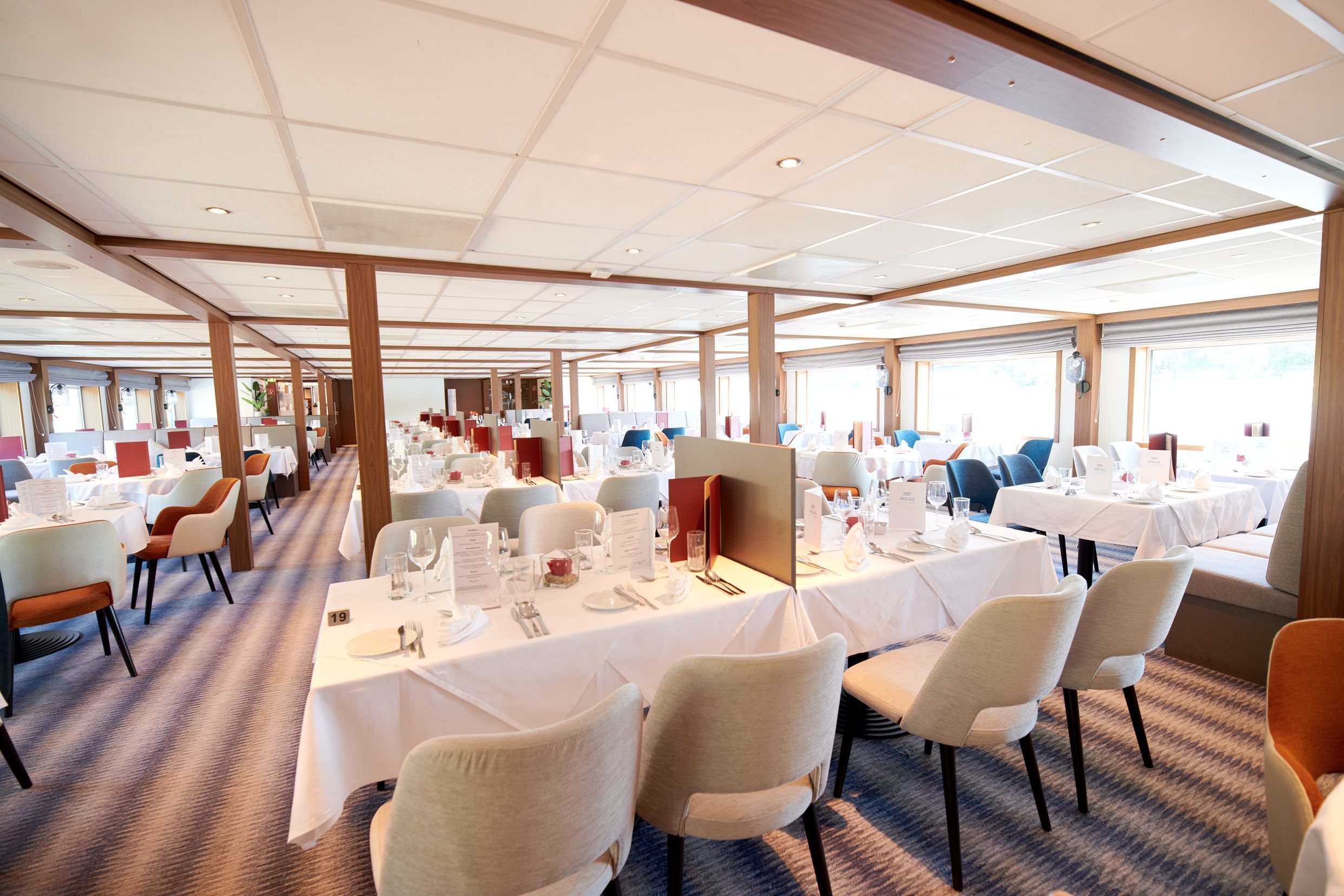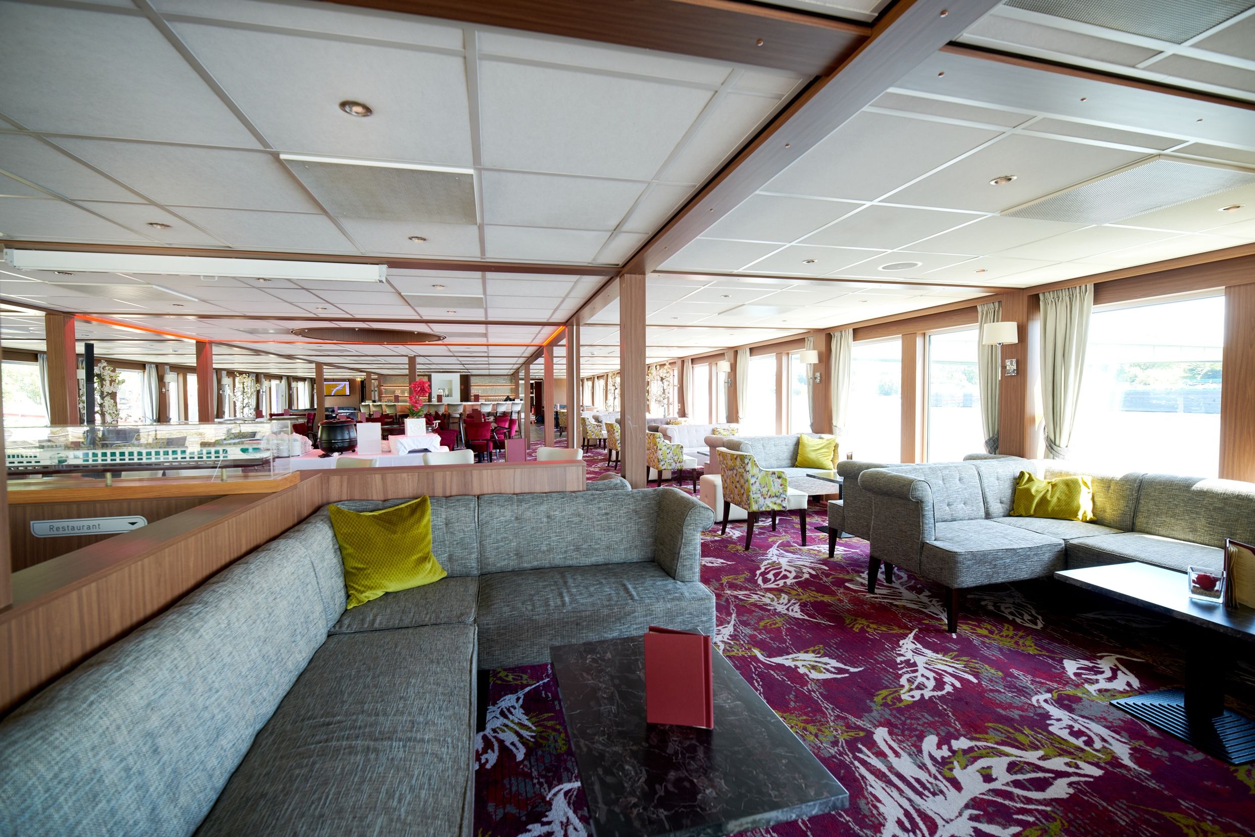 Каютите на средната палуба имат панорамни прозорци, които се отварят.