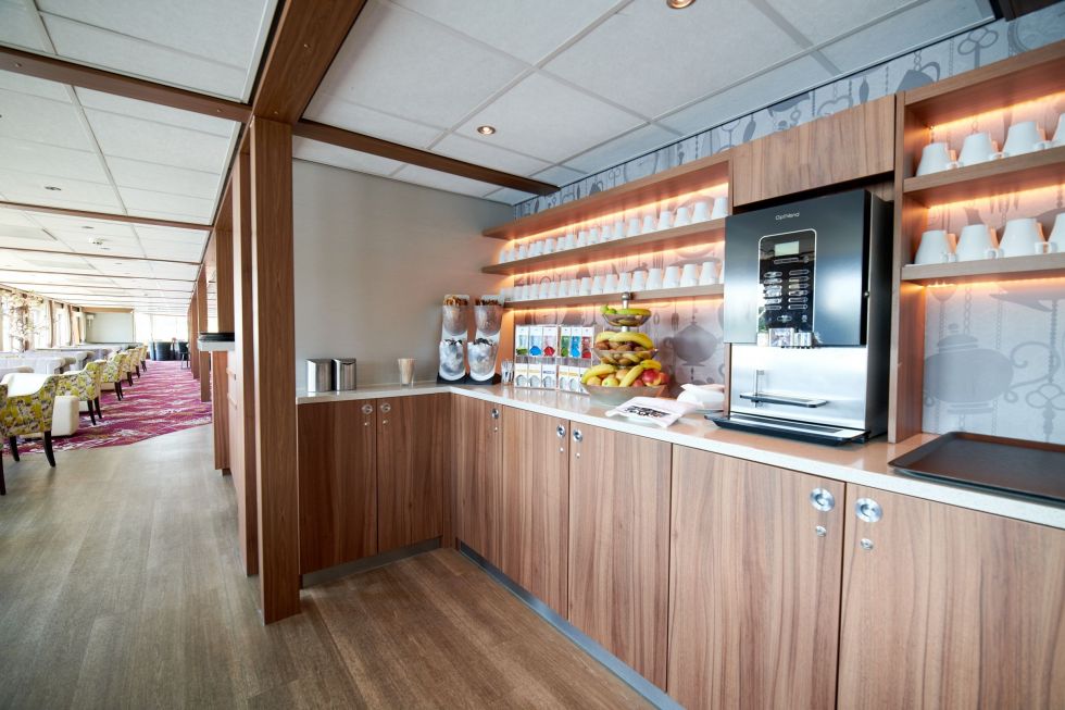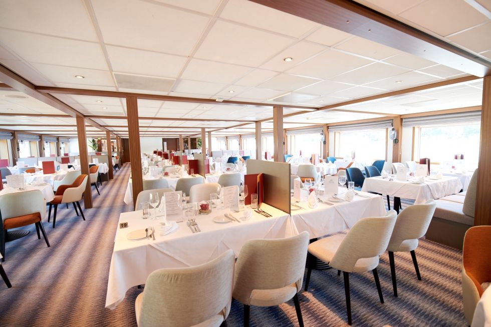 На разположение на гостите са ресторант, бар, библиотека, безжичен интернет срещу заплащане. Корабът разполага с 3 палуби с каюти, които са свързани с асансьор и слънчева тераса със шезлонги. Капацитетът е 192 гости. Реновиран е през 2022 г.