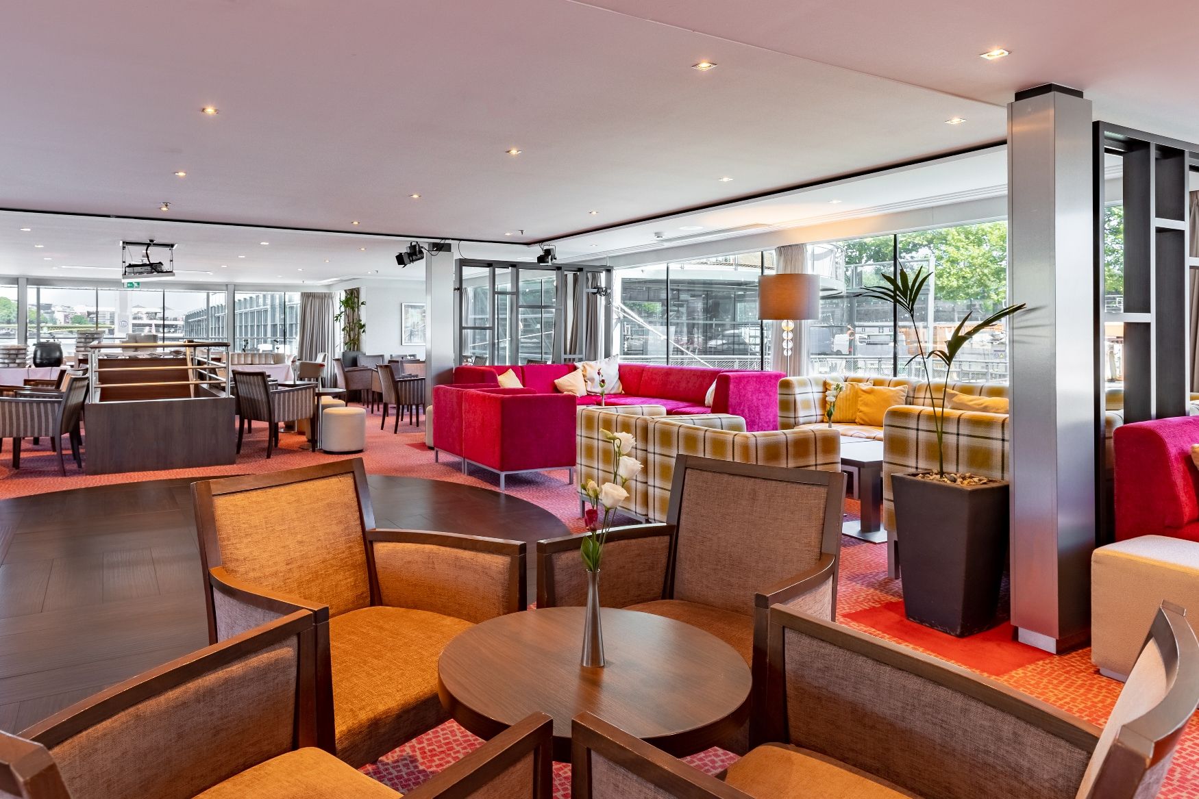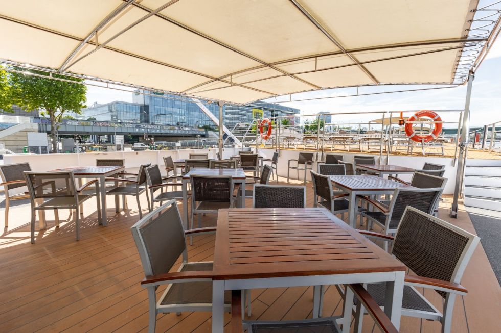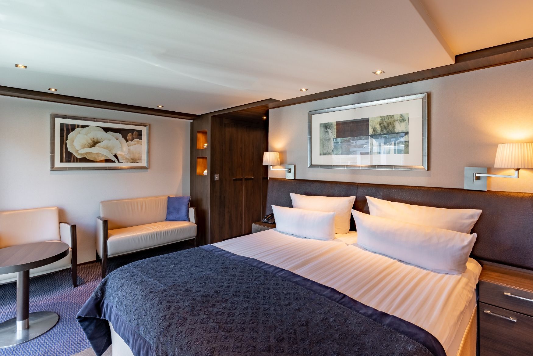 Горна палуба има 24 каюти и 4 суити с панорамни френски прозорци.