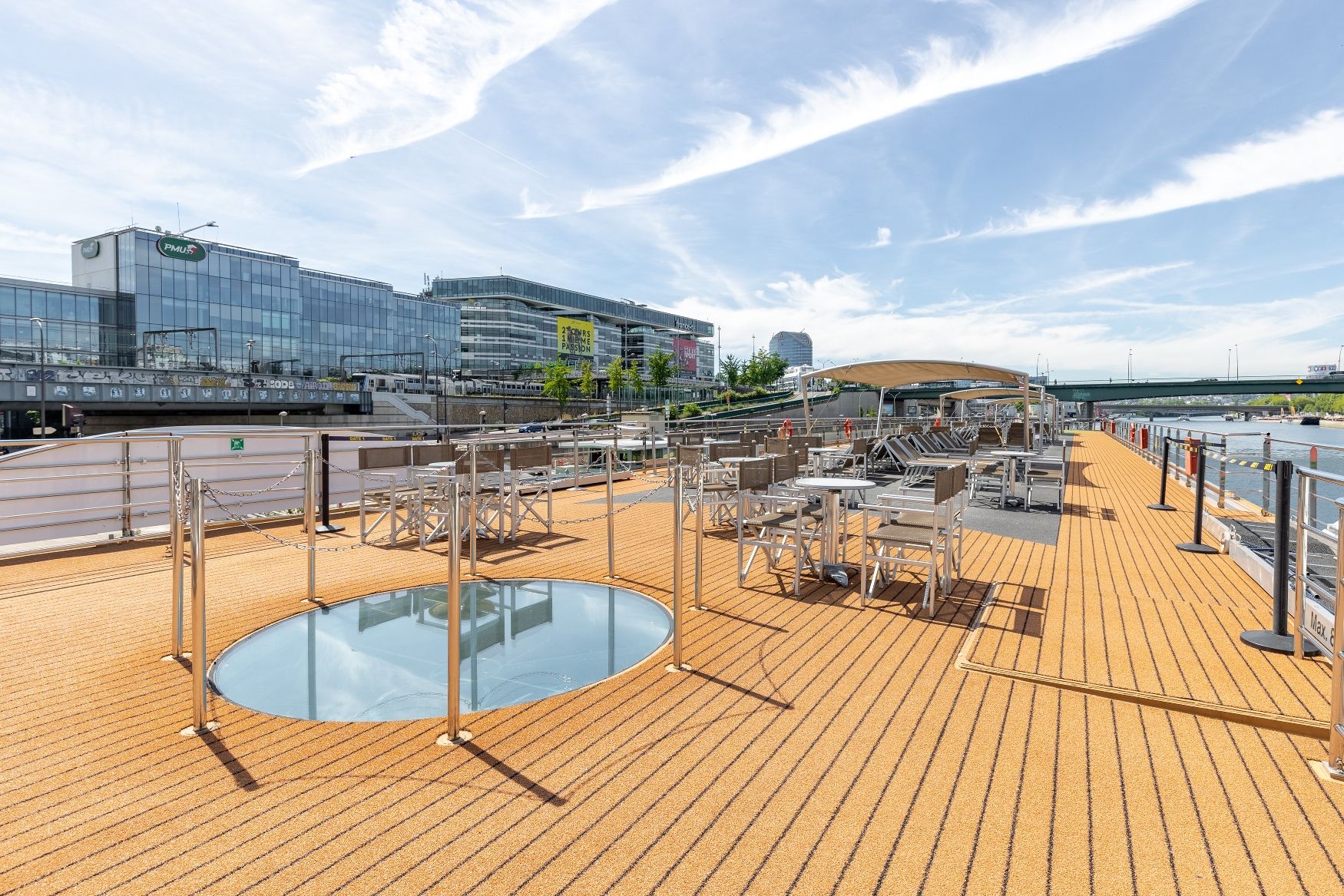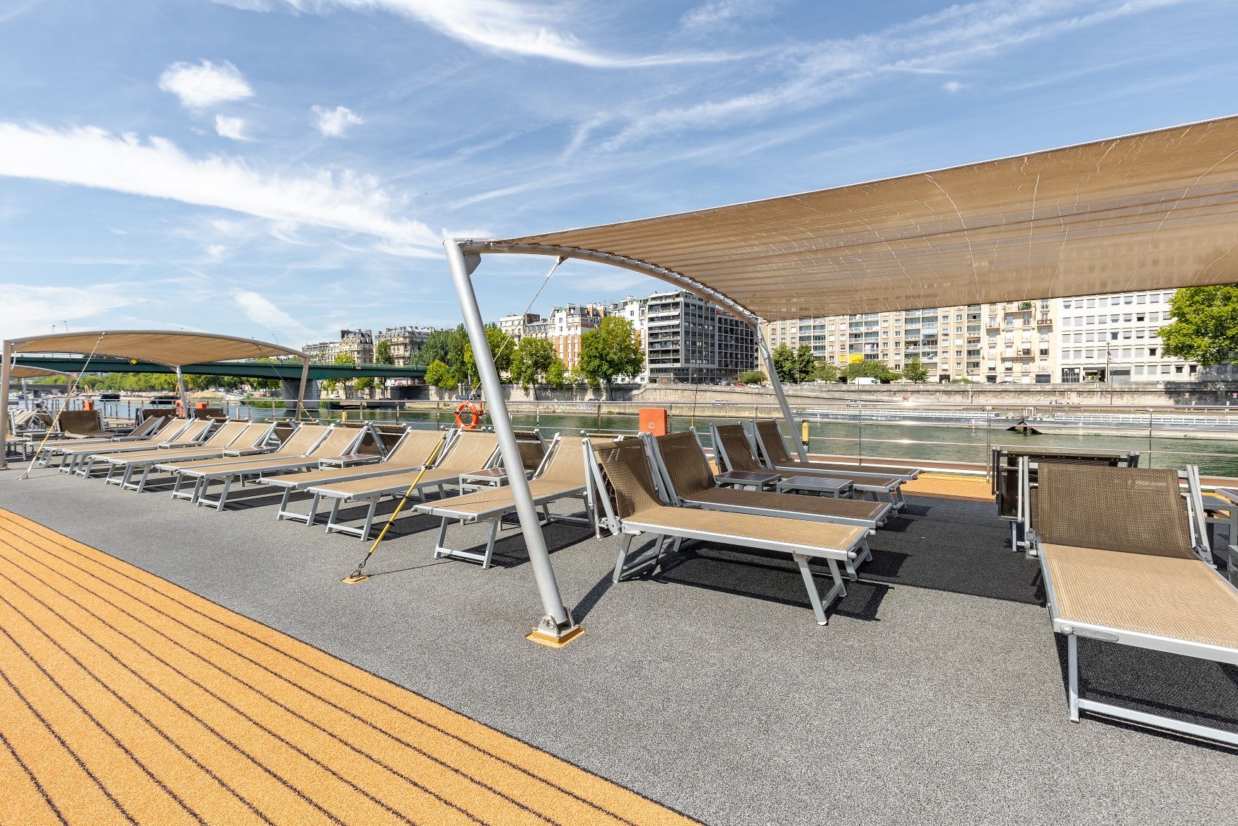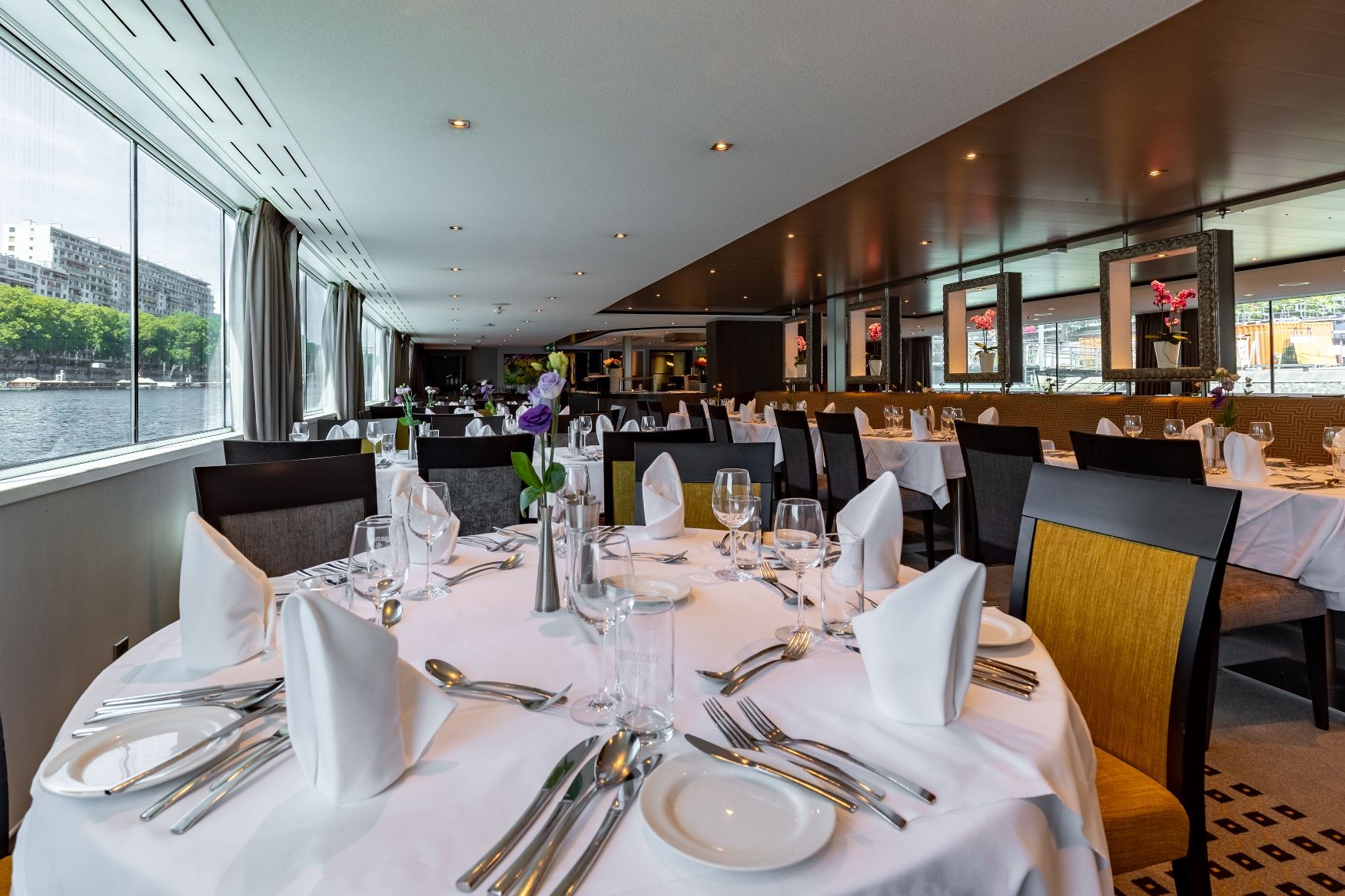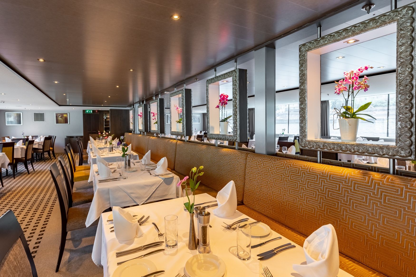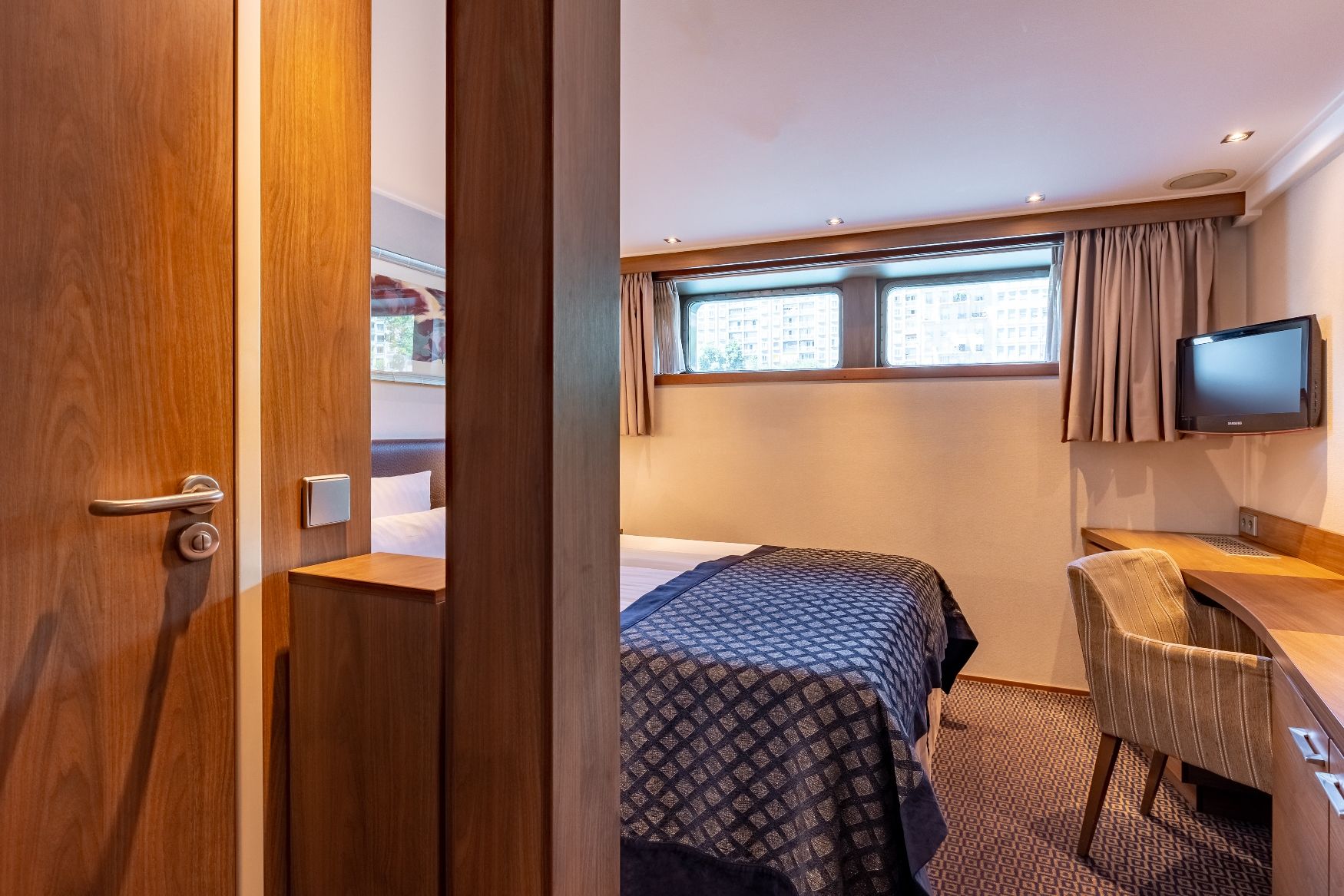 Средна палуба има 30 каюти с панорамни френски прозорци