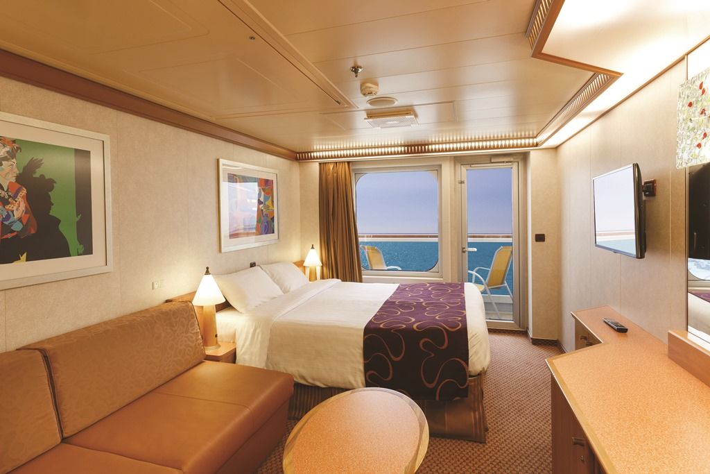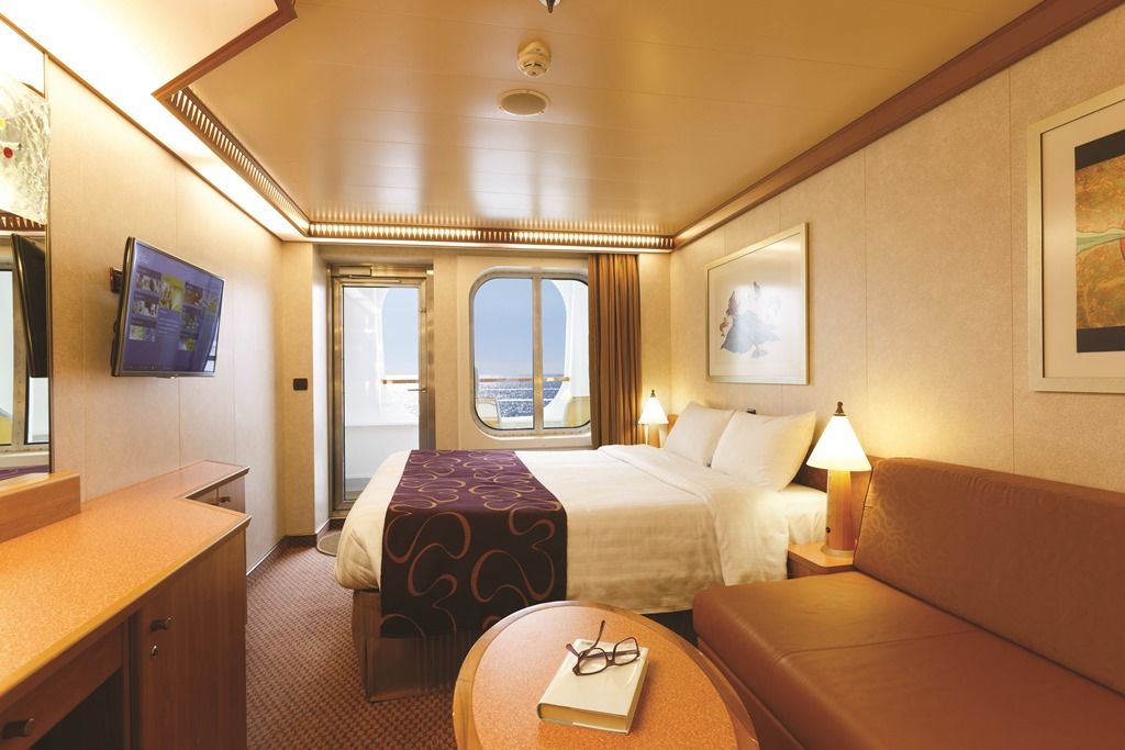 Каюти с балкон, каюти с прозорец / не се отваря /, вътрешни каюти, каюти за инвалиди. Всички с интерактивна ТВ, телефон, сейф, минибар, климатик, интернет срещу заплащане.