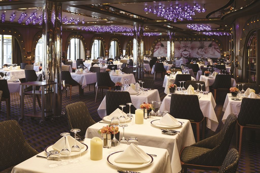 На борда има 8 места за хранене и 11 бара. Между тях основен ресторант, пицария, бюфет ресторант на самообслужване, джелатерия Амарило с италиански занаятчийски сладолед, винотека, немска бирария, ресторант Тепаняки с японска кухня.