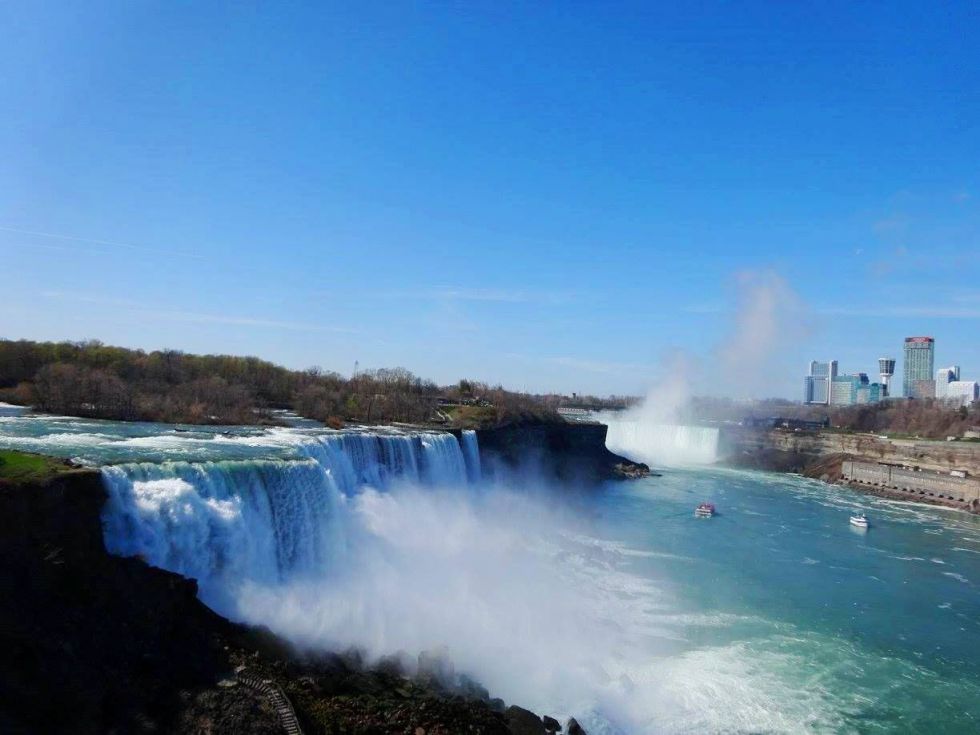 На 130 км от Торонто се намира един от най-впечатляващите природни феномени на континента, съчетаващ мощта на водата с невероятни гледки. Разположен на границата между Канада и Съединените щати, водопадът се състои от три основни каскади: Подковата, Американския водопад и Булчинския воал. Най-големият и известен е Подковата със своите мощни водни струи, които падат от височина над 50 метра. Водопадът може да се види от различни наблюдателни платформи от двете държави, но най-добрите гледки са от канадската страна, където панорамната алея предлага изключителни възможности за снимки. Един от най-популярните начини за преживяване на водопада е разходката с корабче, която отвежда посетителите близо до основата му, където можете да усетите силата на водата и пръските, които създават незабравимо преживяване. Екскурзията е целодневна и включва разходката с корабче.
