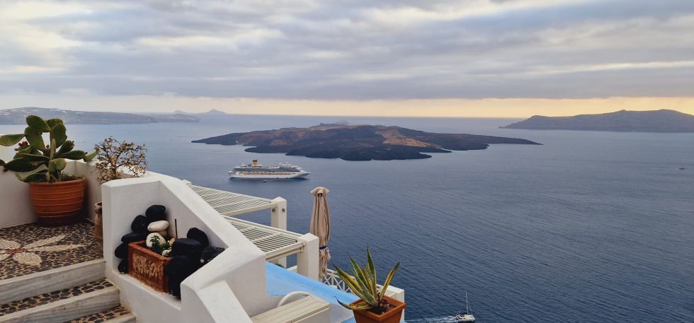 Най-мечтаният гръцки остров е пред нас. Разполагаме с цял ден, за да направим най-красивите снимки в албума си. Разходете се сами или елате с нас на екскурзия до 2 от най-знаковите места на острова. Ще разгледаме Ия, типично гръцко селище с тесни улички, традиционни къщи и прочутите бели църкви със сини куполи, станали визитна картичка на острова. Селцето се намира високо на хълма и от него се открива зрелищна картина към залива на Санторини. Ще посетим и столицата Фира, разположена върху калдерата на вулкана. Градът е с много оживени и живописни улички, обградени от синьо-бели къщи, магазини и заведения. От тук тръгва и въжения лифт, с който ще се спуснем до пристанището на Фира, за да се приберем на кораба /слизането на острова е с лодки от кораба.