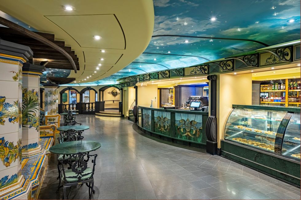 За аперитив преди вечеря или коктейл след това – изборът е между 9 бара на закрито и 3 на откритите палуби. Вечер част от тях предлагат и жива музика, като джаз бара, пиано бара и Сплендида бар. В La Piazetta се предлагат сладкиши и сладолед, а в Tea house – богата селекция чай от цял свят.
