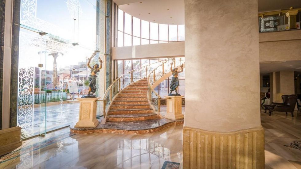 Sunny Days El Palacio предлага автентична ориенталска архитектура, просторна територия, частен плаж, лагуна и мост, водещ към малък остров. Хотелът разполага с открити басейни, аквапарк зона за деца, основен ресторант, тематични ресторанти, барове, амфитеатър, СПА център и търговски обекти.