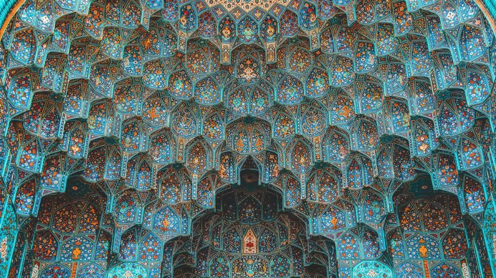 Петъчната джамия на Язд – архитектурен шедьовър със своя висок портал и изящни тюркоазени мозайки;
